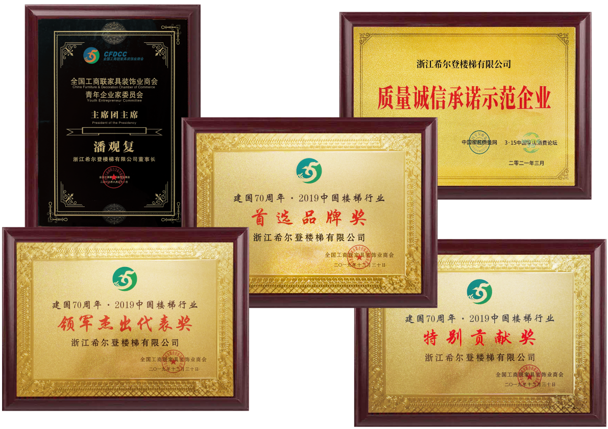 在不斷提升希爾登品牌和企業(yè)實力的同時,希爾登一直熱心參與樓梯行業(yè)的健康發(fā)展;參與創(chuàng)立全國工商聯(lián)樓梯專委會并被推選為中國樓梯品牌聯(lián)盟執(zhí)行主席和樓梯專委會執(zhí)行會長;憑借在行業(yè)內(nèi)的專業(yè)地位,希爾登參與了《木質(zhì)樓梯》,《木質(zhì)樓梯安裝驗收和使用規(guī)范》,《住宅內(nèi)用樓梯》,《建筑用玻璃與金屬護欄》四個國家和行業(yè)標(biāo)準(zhǔn)的起草工作。先后榮獲“中國樓梯十大品牌”、“金木樓梯領(lǐng)軍品牌”、“中國泛家居發(fā)展中企業(yè)500強”、“中國家裝行業(yè)金鉆獎”、“金屬木質(zhì)樓梯一級資質(zhì)”等二十多個榮譽和稱號。我們幾乎參與和見證中國樓梯發(fā)展歷程中的所有重大事件。希爾登過去,現(xiàn)在和未來都是中國樓梯的標(biāo)桿企業(yè)。